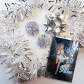 Giant silver Bow, 2X tinsel present toppers and tinsel garland.