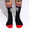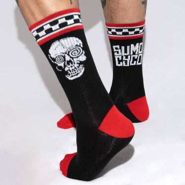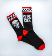 These super comfy black, red and white socks are unisex and just the right amount of stretch! The Sumo Cyco stacked logo and Terrornaut Logo can be worn so either one is facing out.